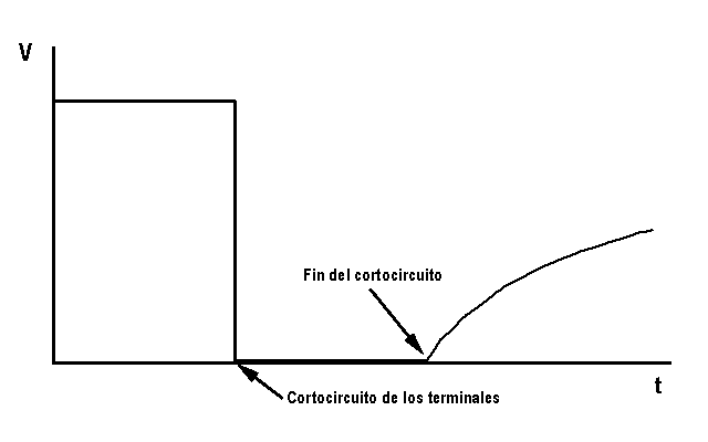 inicio Absorción dieléctrica. Es un fenómeno parásito de los aislantes, que produce el llamado "efecto memoria". Si se prueba cargar un condensador electrolítico a una tensión, y luego descargarlo cortocircuitando sus terminales, se puede ver que su tensión es cero con los terminales cortocircuitados. Pero luego al abrir el circuito se ve rápidamente que su tensión sube hasta alrededor de +1V. Toda la carga debería abandonar el condensador inmediatamente. En la gráfica de la derecha se observa el comportamiento temporal