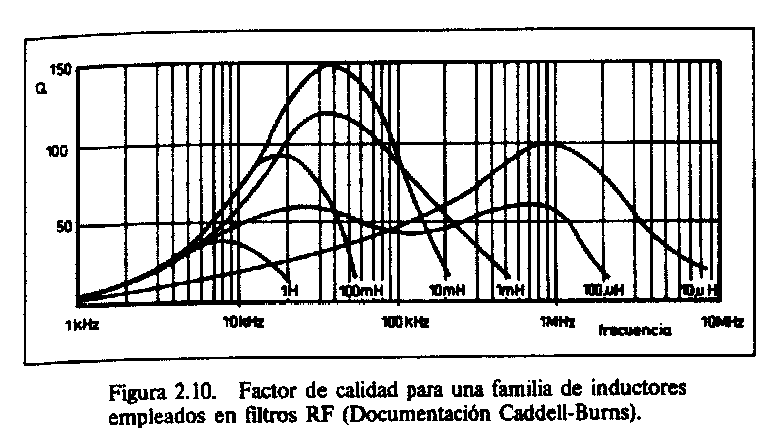 Para bobinas de núcleo de aire, los acoplamientos magnéticos están a la orden del día. Un simple clavo o un tornillo ya varían su inductancia. Una bobina cercana también inducirá corrientes en la otra, tendremos un transformador parásito. inicio Efectos parásitos convencionalesLa resistencia parásita en serie (RDC) también tiene efectos muy perniciosos en el comportamiento de los altavoces. Para empezar, una pérdida de eficiencia, que puede suponer un dB, pero sus peores efectos se producen en el amortiguamiento eléctrico Qes. Qes depende de la Re del altavoz, y si ésta es modificada al añadir la de la bobina en serie, tendremos que el amortiguamiento eléctrico no será tan eficiente (el woofer perderá punch, su sonido será más flácido) Qes es dominante en Qts en un woofer, y el volumen de la caja está determiando en función de Qts, por lo que las variaciones influirán en la respuesta acústica. Ya en otro campo, el skin effect o efecto Kelvin está muy presente en las bobinas y transformadores que trabajan a alta frecuencia, en fuentes conmutadas, choppers, etc. |  | | | Efecto Kelvin | Se supone que una bobina no debe disipar potencia porque su impedancia no es real, pero tiene una cierta RDC que si es real, y a alta frecuencia esta RDC crece debido al efecto Kelvin, por lo que una bobina que en DC tiene 0,05Ohm puede tener varios Ohmios a 50kHz. Por eso en muchos bobinados se utilizan cables pequeños en paralelo, en vez de uno grueso. |  | | | Chokes | Además, la disipación de potencia supone calor, y éste, temperatura. La mayor dificultad en orientar las partículas magnéticas debido a la temperatura supone una menor eficiencia en el material, y una menor inductancia. También a altas frecuencias al inductancia que crea al material desaparece, por la imposibilidad de orientar las partículas magnéticas. |  | | | Modelo: bobina de ferrita | Por otra parte, la capacidad parásita entre espiras es alta, ya que el dieléctrico (esmalte de poliuretano) es muy fino y no es suficiente como para evitarla. Esto y lo anterior hacen que a muy alta frecuencia no se comporten como bobinas. El fenómeno de la capacidad es dominante en bobinas de aire. En transformadores esto es más pernicioso, y de hecho en transformadores de señal existe aislamiento galvánico entre los dos bobinados. |  | | | Modelo: bobina de aire | En bobinas de núcleo de ferrita o hierro, el el que se puede apreciar en la gráfica de la derecha. Se puede definir incluso un parámetro Q para modelar la respuesta. |  | | | Respuesta de algunas bobinas |